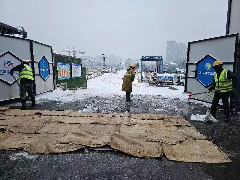 ? ? ? ?巡司河綜合治理二期項目投入除雪作業(yè)人員29人,鋪設(shè)麻袋150件,除雪鏟車一臺,除雪鹽15袋,保障白沙洲大道及南湖部分路段行車安全;巡司河綜合治理一期項目突擊隊51人,頂風(fēng)冒雪,全力清除項目施工區(qū)域及武梁路面上的積雪;巡司河街污水管道及跨復(fù)興路箱涵工程總承包(EPC)項目齊心協(xié)力,分工明確,高效配合,對現(xiàn)場電纜線及水管已進(jìn)行防寒保護(hù),聯(lián)合社區(qū)對工地周邊道路除雪去冰;青山濕地二期項目部組織18人突擊隊、鏟車1臺,拋撒工業(yè)鹽0.5噸,草墊麻袋10捆,為青山汽渡碼頭道路、輪渡碼頭行人通道及周邊住戶掃除積雪;南湖生態(tài)活水項目補(bǔ)水通道工程突擊隊20人,拋灑2噸融雪劑,對項目內(nèi)部道路及周邊近2公里道路進(jìn)行融雪除冰。