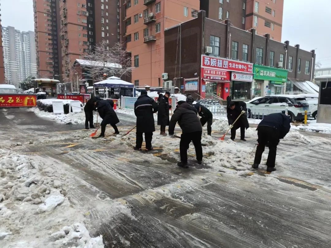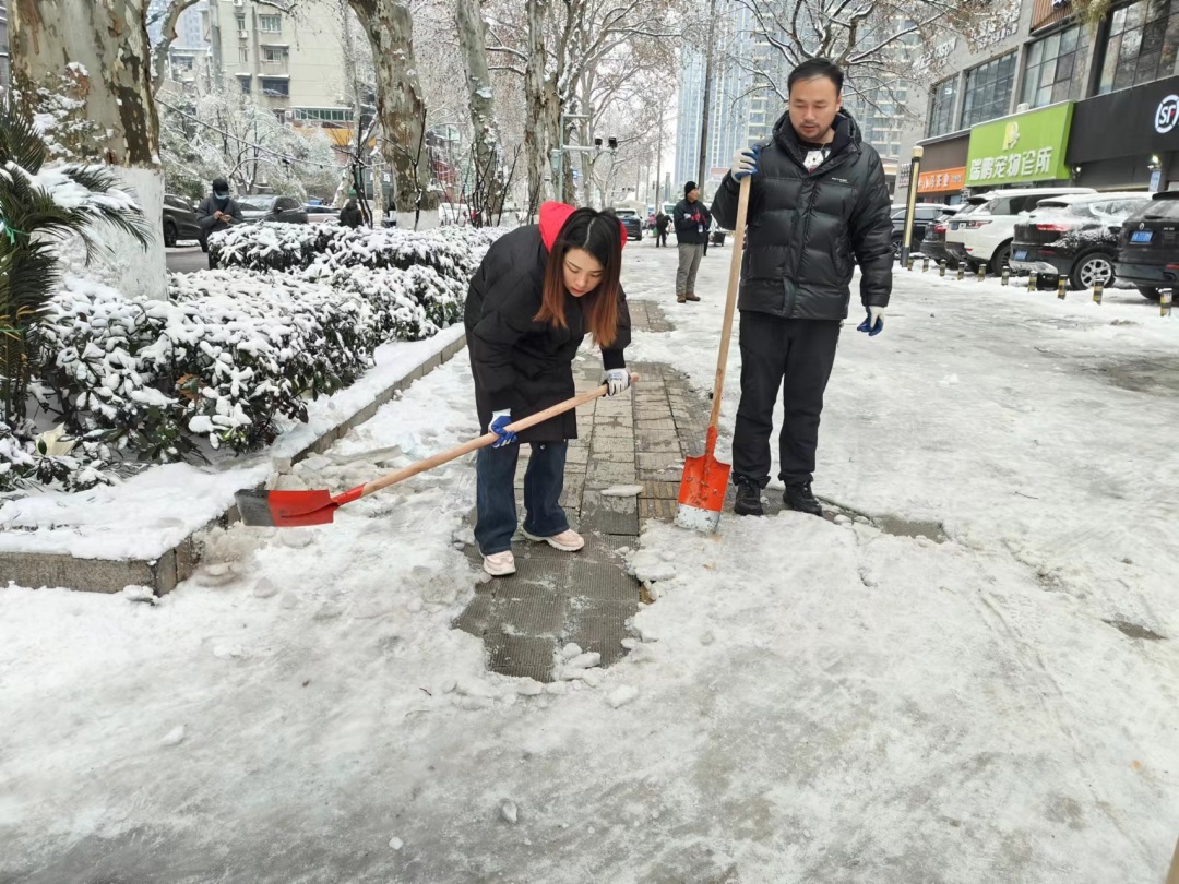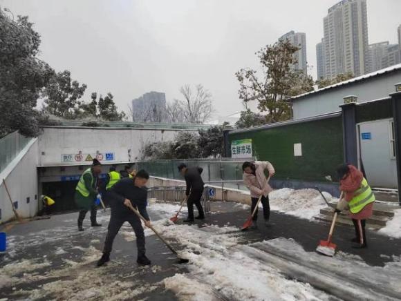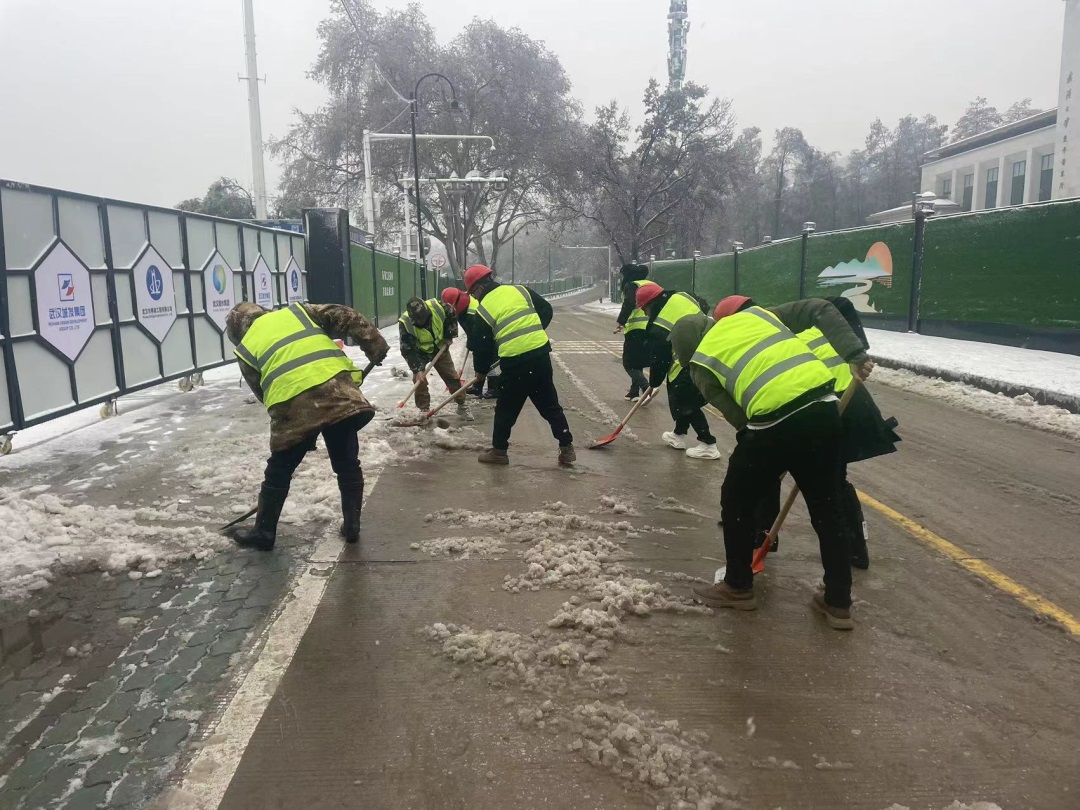 ? ? ? ?為應(yīng)對低溫雨雪冰凍天氣,武碧綜發(fā)公司全員行動迅速成立掃雪隊伍,對公司各項目小區(qū)道路和周邊道路的積雪、覆冰進(jìn)行清掃,并及時拋灑融雪劑、鋪設(shè)麻袋、草墊等防滑物資,確保各出入口及通行區(qū)域無積雪結(jié)冰,全力保障居民的出行安全。