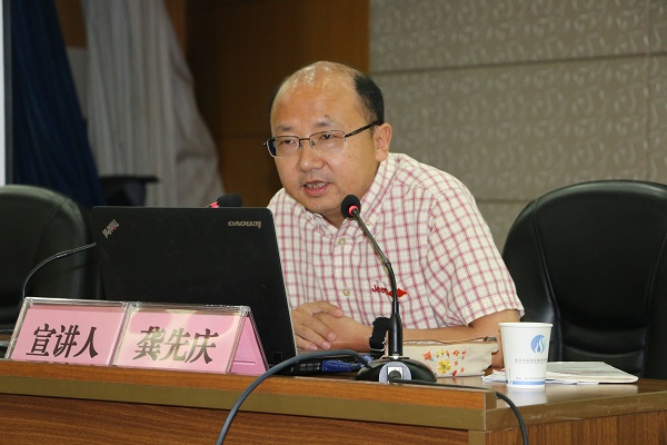 龔教授從共產黨發展歷史角度為切入,闡述了我黨堅定不移推進全面從嚴的至關重要性。他在講課中指出,當前我黨面臨?“四大考驗”、“四大危險”,我們要深刻認識黨面臨問題的嚴重性、頑固性,深刻認識全面從嚴治黨的艱巨性長期性,堅定不移推進全面從嚴治黨,把政治建設放在首位,嚴明黨的紀律,強化黨內監督,堅決糾正各種不正之風,以零容忍態度懲治腐敗,不斷增強黨自我凈化、自我完善、自我革新、自我提高的能力。